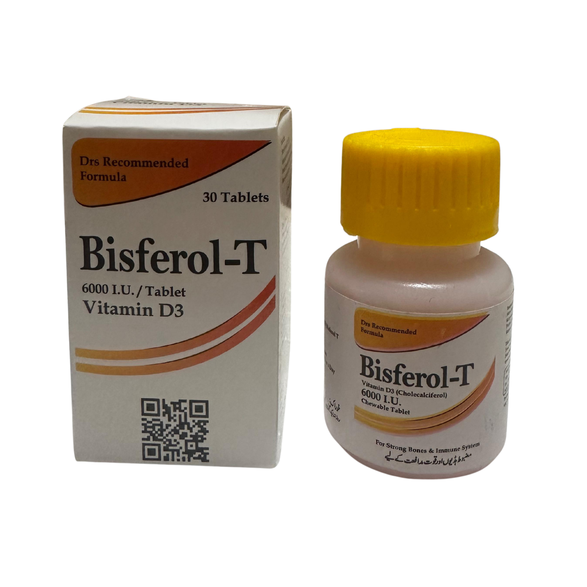 Bisferol-T contains Cholecalciferol (Vitamin D3) 6000 IU per chewable tablet. It is used as a nutritional supplement to support strong bones and immune system health.